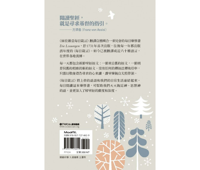 《每日箴言》將上帝的話語和我們的日常生活連結起來。每日閱讀這本靈修書,可幫助我們天天親近神、思想神的話,並更深入了解聖經的廣度和深度。